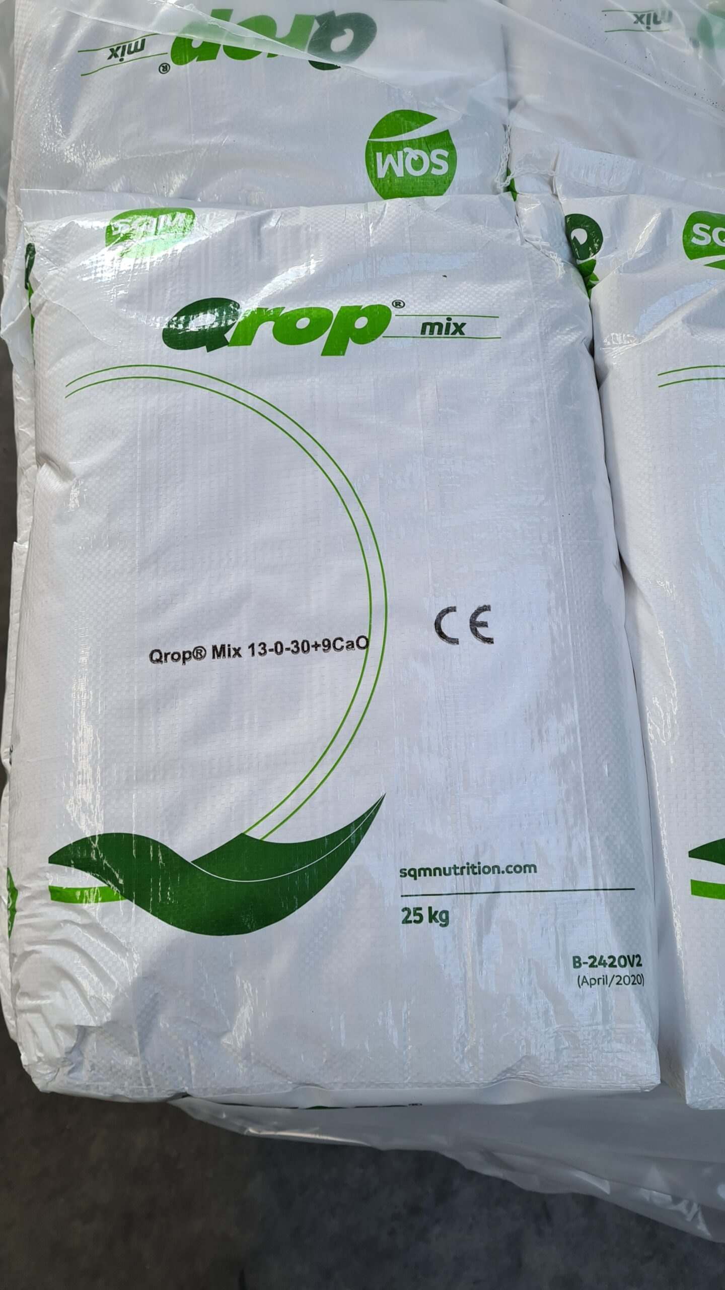 Qrop® Mix Production 14-0-23+13CaO to wysokiej jakości nawóz granulowany oparty na saletrze potasowej produkowanej przez SQM w Chile – światowego lidera w tej technologii. Dzięki unikalnemu procesowi wydobycia i oczyszczania naturalnych złóż z pustyni Atacama, SQM oferuje nawozy o najwyższej czystości i rozpuszczalności, całkowicie wolne od chlorków, sodu i metali ciężkich.