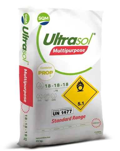 Ultrasol® ProP® Multipurpose 18-18-18+TE to w pełni rozpuszczalny nawóz krystaliczny przeznaczony do fertygacji i dokarmiania dolistnego. Dzięki równym proporcjom azotu, fosforu i potasu (18-18-18) zapewnia roślinom harmonijne odżywienie na każdym etapie wzrostu. Idealnie sprawdza się zarówno w warzywach, sadach, roślinach ozdobnych, jak i w uprawach pod osłonami czy hydroponicznych.